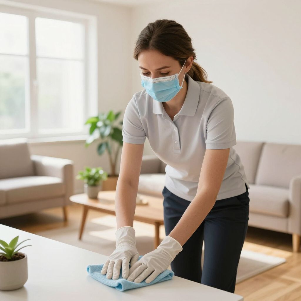 We follow strict cleaning protocols including disinfecting surfaces and using protective gear to maintain a safe home environment.